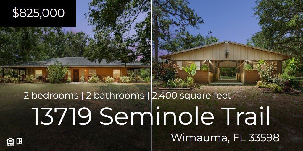 Escape to wide-open skies and rolling green pastures with this exceptional 10-acre equestrian retreat, perfectly positioned in peaceful Wimauma and just minutes from Parrish. Thoughtfully crafted for horse lovers and country lifestyle seekers alike, this versatile property spans two 5-acre parcels, offering serene, pastoral living with every amenity for your equine companions and homesteading dreams! At the heart of the property, you’ll find a well-appointed 5-stall barn, complete with a tack room and a wash stall just outside, creating a streamlined space for daily care and grooming. Three fenced paddocks offer generous room for rotation and turnout, while the expansive pasture is ideal for setting up a custom show jump course... a rare find for riders training at home! The 2,400 sq ft residence welcomes you with a bright, open-concept floor plan, featuring 2 bedrooms, 2 bathrooms, and a flexible bonus room perfect as a home office, creative studio, cozy den, or even a third bedroom. A wrap-around porch, screened on three sides, invites you to savor sunrise coffee and sunset views over the peaceful countryside. For added indoor-outdoor connection, every room in the home features its own private door to the outside, allowing you to fully embrace the surrounding natural beauty. Behind the home, a massive workshop, flanked by dual storage wings, offers ample space and is perfect for trailers, tools, farm gear, or your next big project. RV enthusiasts will appreciate the dedicated electrical hookups for RVs, complete with 50-amp and 30-amp breakers, making this retreat ideal for hosting guests or embracing a nomadic lifestyle with ease. Whether you're an equestrian enthusiast, a hobby farmer, or simply seeking a private, peaceful lifestyle, this is truly a one-of-a-kind gem. With easy access to Parrish, Sun City Center, Sarasota, and Tampa Bay, this is your chance to enjoy country living without compromise. Don’t miss this classic beauty! Schedule your private showing today!